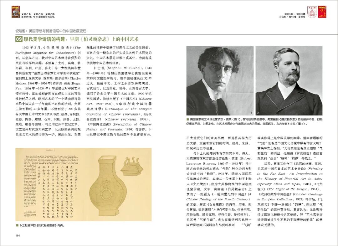 1903年3月,《伯灵顿杂志》创刊。从创办之初,就对中国艺术保持着强烈的关注与浓厚的兴趣,不但有卜士礼、宾庸、霍布森、韦利、叶慈、喜龙仁等一大批英国和世界其他地方“最杰出的东方艺术学者和收藏家”在刊物上发表文章,查尔斯·霍尔姆斯和罗杰·弗莱等主编也对中国艺术情有独钟,霍尔姆斯曾预言在现实主义的可能性被耗尽之后,欧洲艺术的下一个运动很可能采取中国人在一千年前即已宣称的法则。