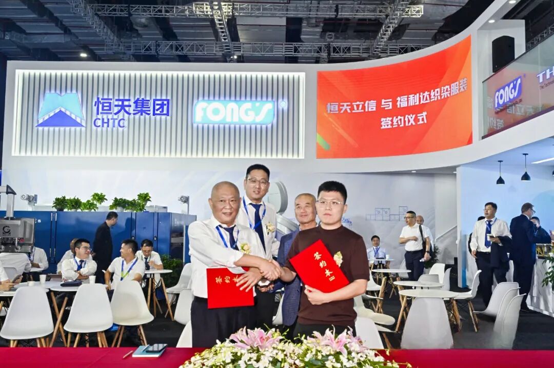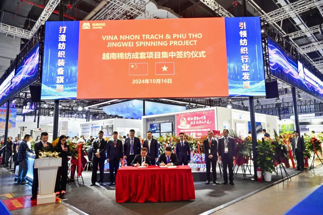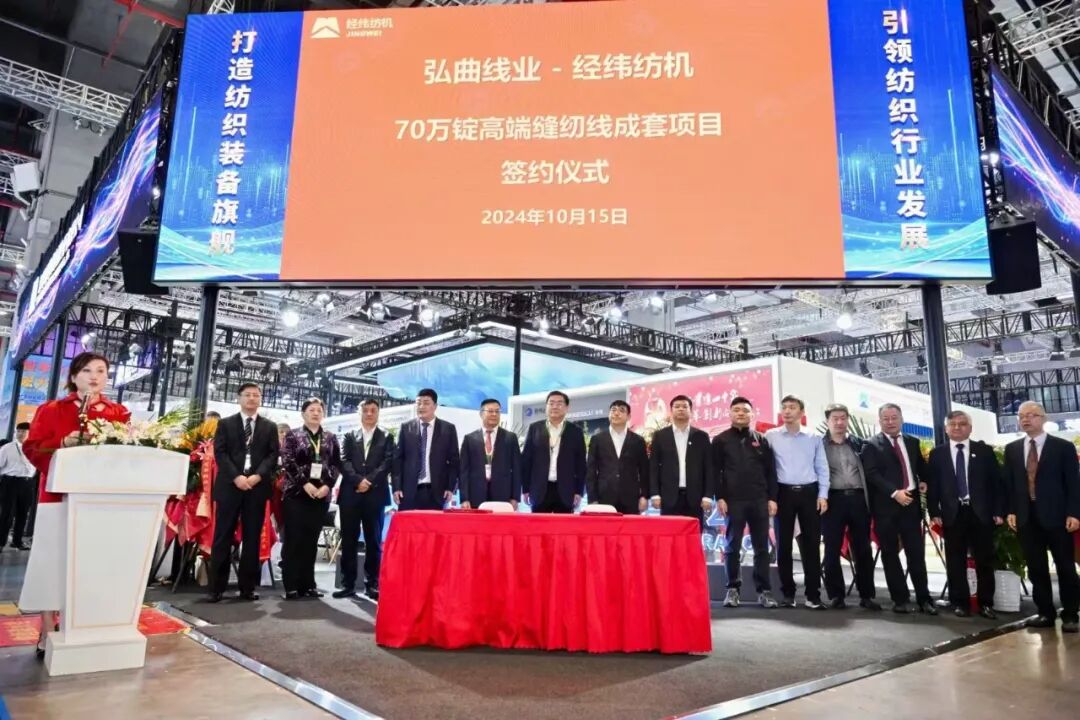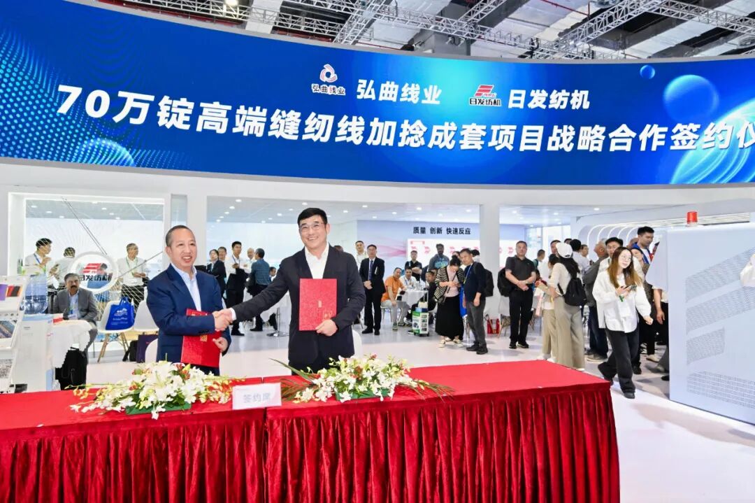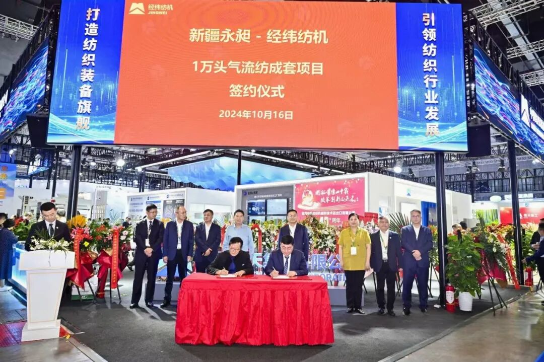 展会现场还举行了一系列签约仪式。浙江日发纺织机械股份有限公司分别与新疆欧泰纺织科技有限公司和大向(新疆)纺织科技有限公司签订了合作协议;与宜宾弘曲线业有限公司举行了战略合作签约仪式。无锡宏源机电科技股份有限公司与福建永荣锦江股份有限公司签订了ATY空气变形丝机订单。中国恒天立信国际有限公司与‌‌广东溢维环境科技有限公司在无水染色领域签订全面战略合作协议,并分别与福建宏港高端化纤全套智能染厂、浙江超达新材料股份有限公司、海宁九鼎纺织有限公司、福利达织染服装有限公司进行签约。经纬纺织机械股份有限公司分别与宜宾弘曲线业有限公司成功签署70万锭高端缝纫线成套项目战略合作协议,与无锡灵奕智能科技签署无轨移动式细纱机生头机器人项目,携手实现无轨移动式细纱机生头机器人技术升级、成果转化和规模化推广;与新疆永昶纺织有限公司签署1万头气流纺成套项目战略合作协议,打造新疆地区首个经纬全流程气流纺成套项目样板工厂;经纬纺织机械股份有限公司签订越南VINA NHON TRACH项目和越南PHU THO项目。北京和利时电机技术有限公司与无锡宏源机电科技股份有限公司签订长久战略合作协议……