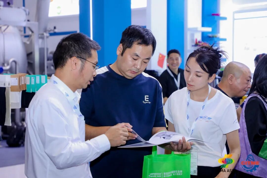 此次参展主推万事利丝绸GBART活性免水洗一体机,这款设备除了智能、高效外,还能减少99%污水,是企业绿色转型的硬核科技,很多丝绸制造企业对该设备感兴趣,展位上每天都有很多新老客户来观摩设备操作,很多意向客户基本每天都来商谈合作事宜