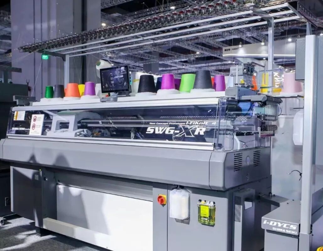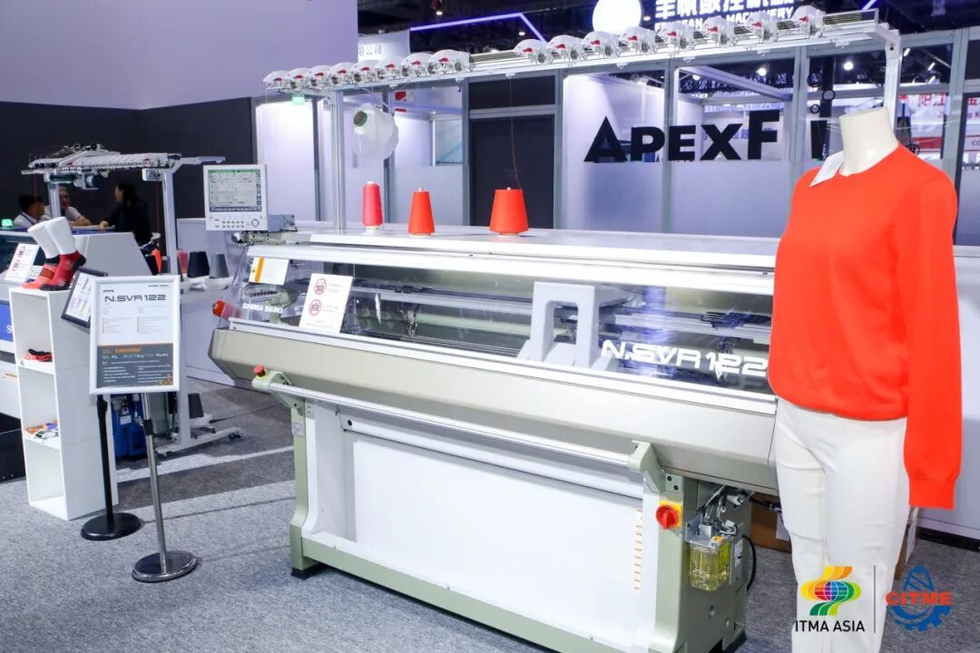 针织设备领域聚焦于智能化、个性化的针织生产解决方案,满足消费者对时尚、舒适针织产品的追求。圣东尼SM8-TOP2ST借鉴了袜机提花毛圈技术,在无缝机上实现任意毛圈的编织;卡尔迈耶推出了STOLL  ADF-530kiFLEX电脑横机,具有针床筒口实时可调,机头配置精密的机械手装置,编织时可将芯片准确植入织物中,使可穿戴功能性毛衫服装自动化生产;伟焕展出了双针筒织翻缝一体袜机,首次采用选针器做头跟收放针,取消了挑针器和揿针器;五洋纺机展出了双针床毛绒经编机,采用超大针距横移技术;常州赛嘉展出的双针床毛绒经编机,大大提高了双针床毛绒织物的生产效率;福建佰源的电脑罗纹提花机,下针电子选针,每路上针全出针,可以编织布面凹凸感的提花面料;连云港元丰的割圈长毛绒机,可以编织三层毛高的长毛绒产品等。