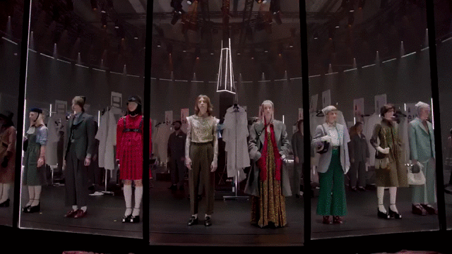 直播里的 VSH 播放界面事宜型录方式展示整季的设计,而时装秀部分是以复古电子感的画面进行直播呈现,甚至连模特都是来自 Gucci 幕后的工作人员。疫情之下,Gucci在如此众多的云秀场中,独树一帜,让人印象深刻。