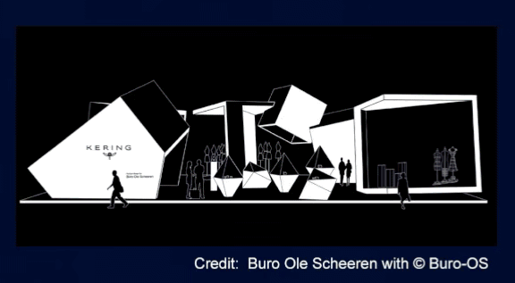 能将去年的展示空间进行重复再利用,得益于开云和奥雷·舍人从一开始就设计好的半模块化系统,它们就像一对大乐高玩具,可根据需求进行重新部署和改组。