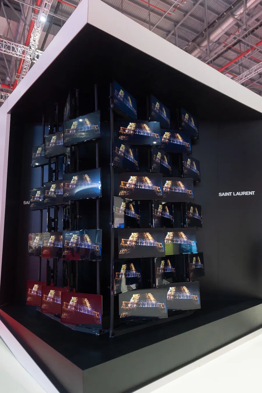 圣罗兰(Saint Laurent)则通过现场超酷的多媒体装置,展示了由品牌创意总监安东尼·瓦卡莱洛(Anthony Vaccarello)策划的 2021 年春夏男装系列影片。