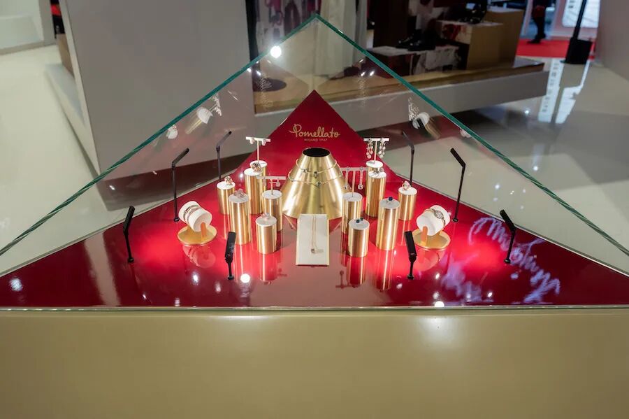 宝曼兰朵(Pomellato)在现场的玻璃展柜中真的可以说是如彩虹一般绚烂,最新的 NUDO 系列也是磅礴非常喜欢的系列,承载宝石的原始光彩,闪耀着色彩、俏皮和完美的不规则形状。