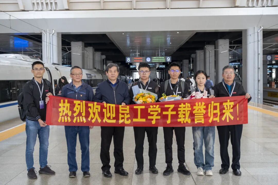 校党委副书记、校长王华到昆明南站站台迎接第十八届“挑战杯”全国大学生课外学术科技作品竞赛获奖学生代表并为他们送上鲜花祝福。随后,校党委副书记、校长王华,校党委副书记蔡金红在呈贡校区办公大楼11楼会议室召开总结座谈会,并与获奖团队进行深入交流座谈。