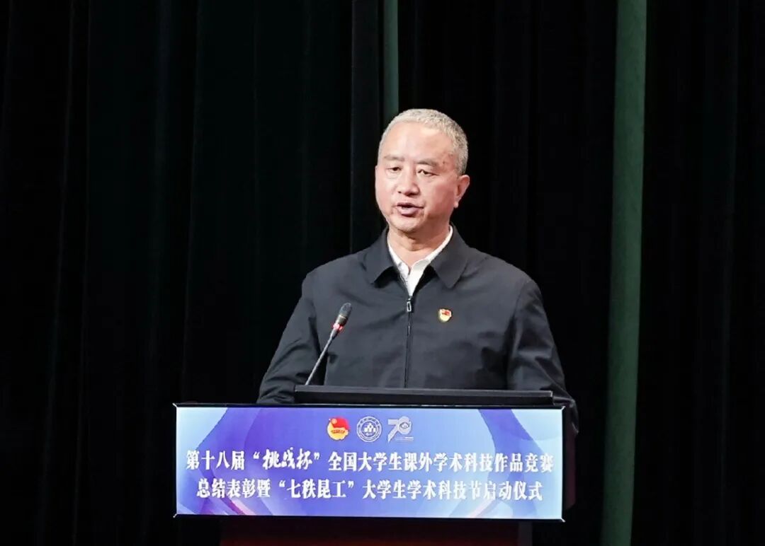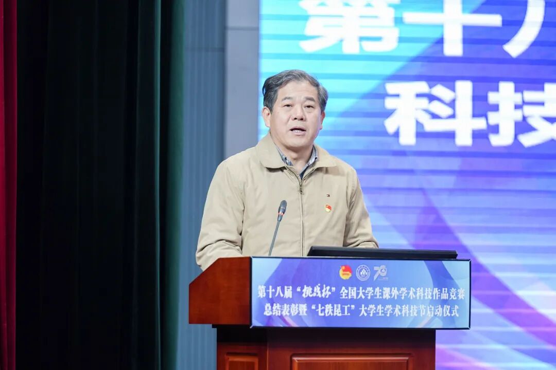 第十八届“挑战杯”全国大学生课外学术科技作品竞赛昆明理工大学校赛启动仪式在学校呈贡校区举行。校党委副书记、校长王华宣布校赛启动,校党委副书记蔡金红,时任校党委常委、副校长周峰越出席活动。