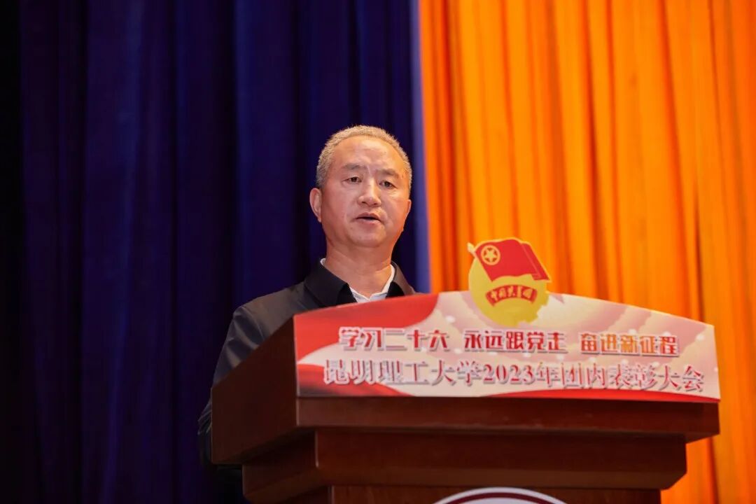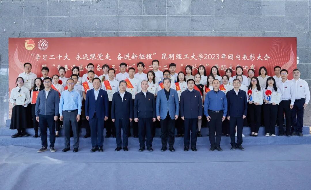昆明理工大学在呈贡校区举行“学习二十大 永远跟党走 奋进新征程”2023年团内表彰大会。校领导唐家华、王华、蔡金红、降富楼、易健宏、周峰越、杨斌、潘学军、潘波出席大会。
