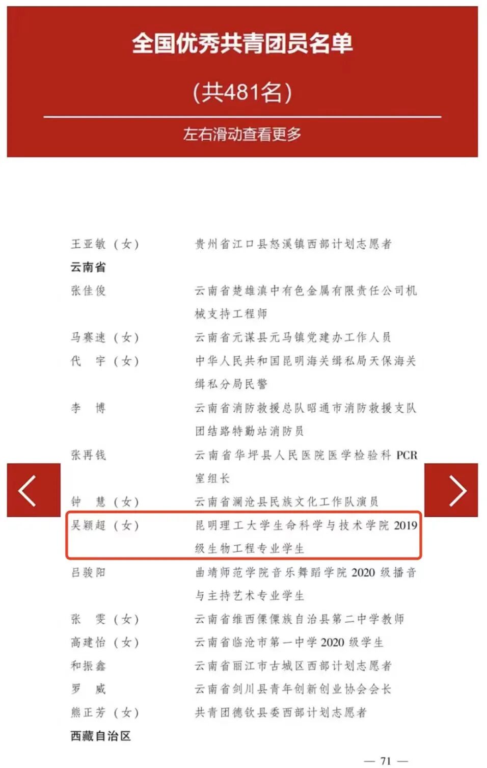 学校生命科学与技术学院2019级本科生吴颖超同学获评“全国优秀共青团员”,全省仅13人获此殊荣。