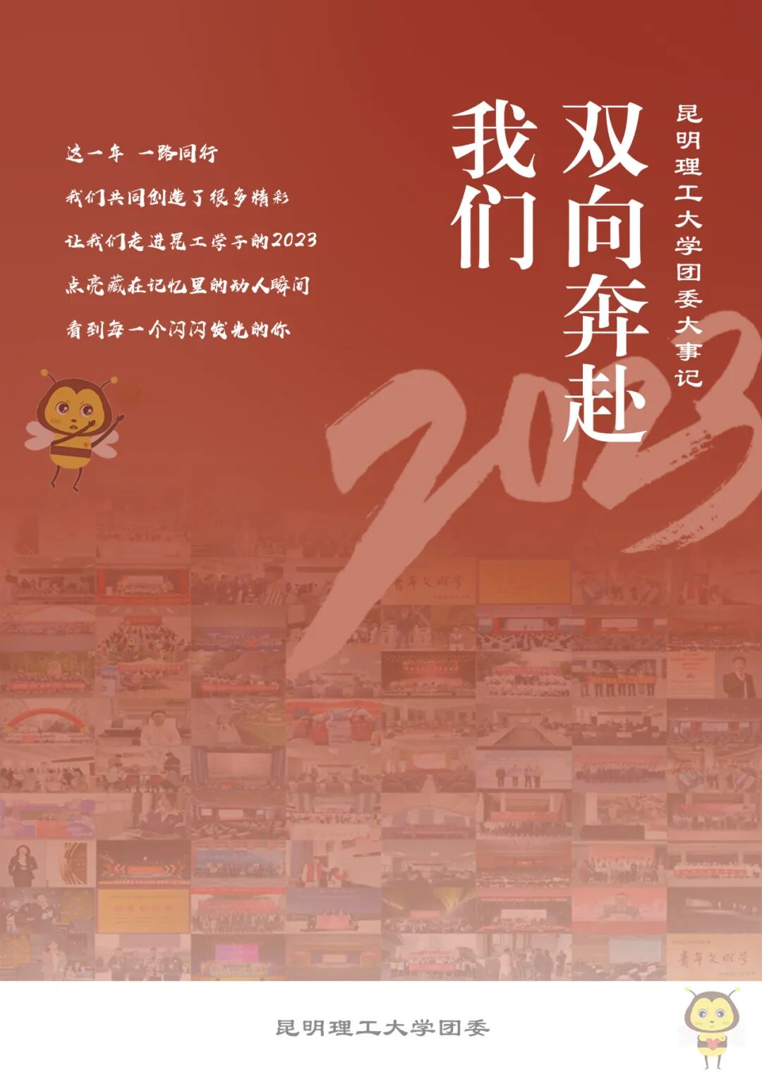 2023年,昆明理工大学团委在校党委和团省委的坚强领导下,高举习近平新时代中国特色社会主义思想伟大旗帜,全面贯彻落实党的二十大精神,深入学习贯彻习近平总书记在同团中央新一届领导班子成员集体谈话时的重要讲话精神,围绕中心、服务大局,感恩奋进、笃行实干,聚焦主责主业,持续深化改革,全面从严治团,大力实施“青年铸魂”“团建强基”“文化传承”“实践育人”四项工程,扎实推动团员和青年主题教育走深走实,不断增强团的政治性、先进性、群众性,持续提升共青团的引领力、组织力、服务力和大局贡献度,团结带领广大团员青年为学校“双一流”创建和特色鲜明研究型高水平大学建设贡献青春力量,以昂扬奋进的青春姿态、以优异成绩共迎学校70周年华诞。