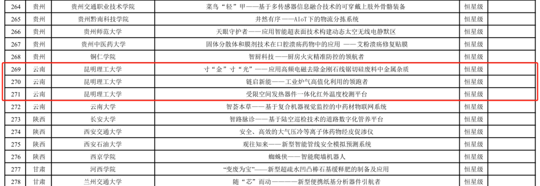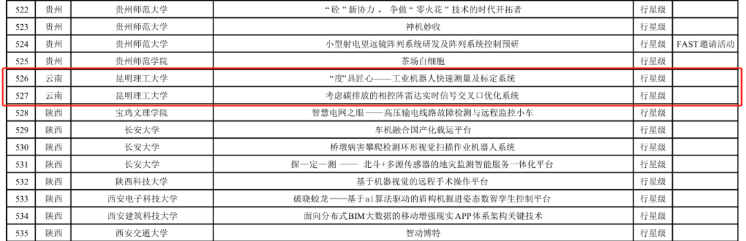学校《面向工业现场的机器人快速标定系统》项目在2023年全国大学生机器人科技创新交流营暨机器人大赛中荣获一等奖,是云南省高校本届竞赛获得的唯一一项一等奖。《基于数字孪生的上下料机械臂路径规划虚拟示教与实现》项目获三等奖。