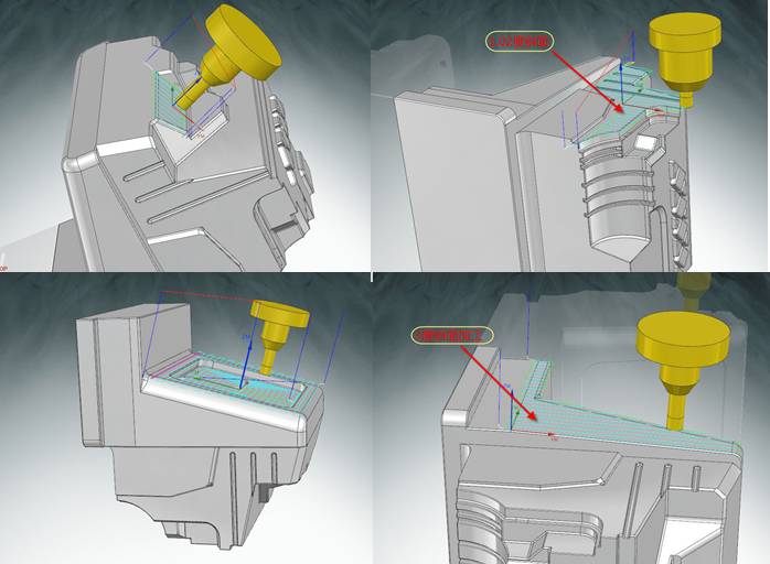 有些情况不宜采用五轴方案,比如刀具太短,或刀柄太大,使任何倾斜角的工况下都不能避免振动。