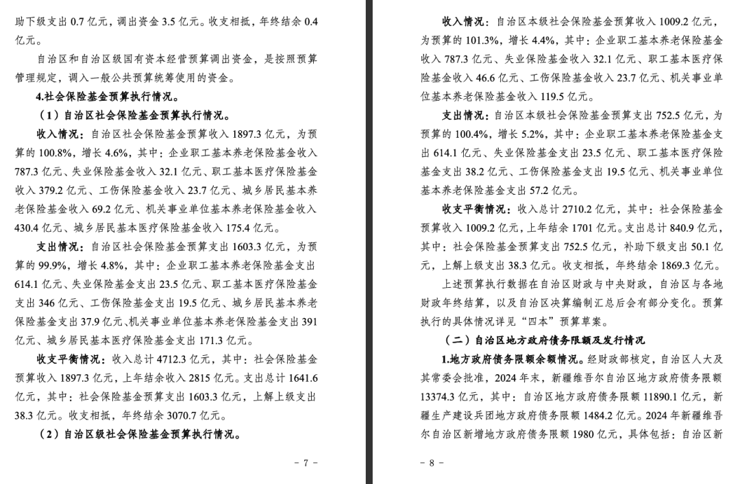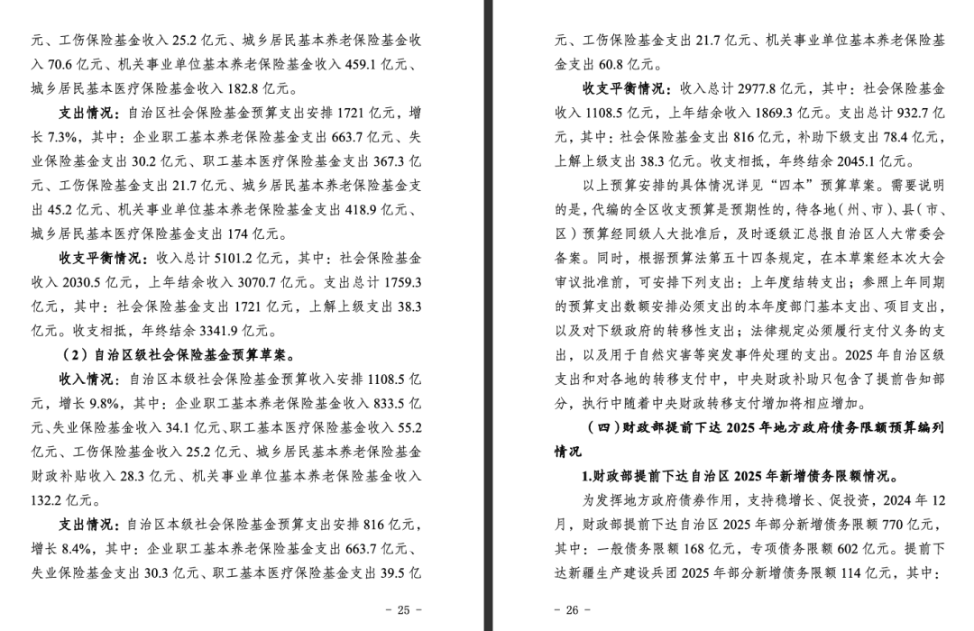 (七)2025年社会保险基金预算收入预计和支出安排