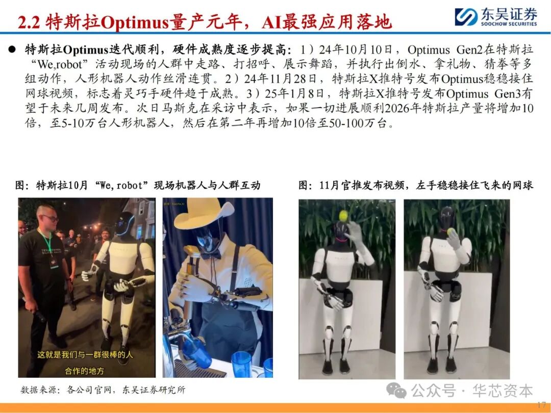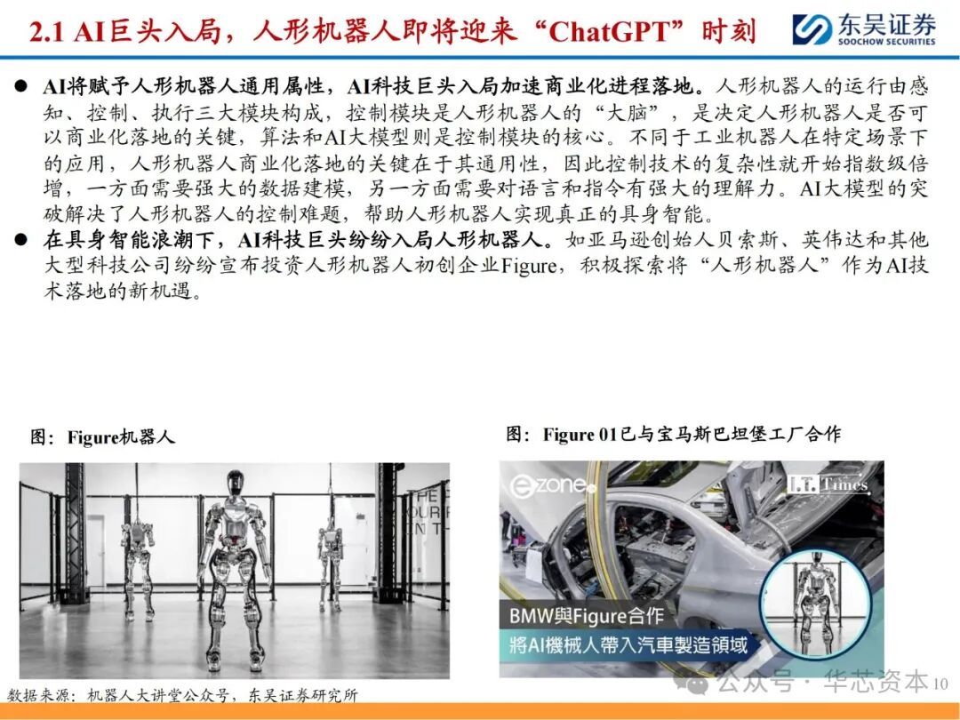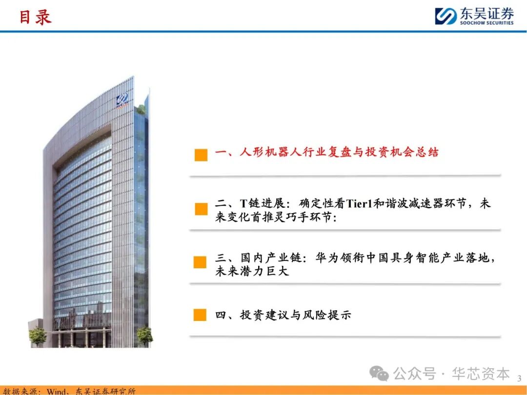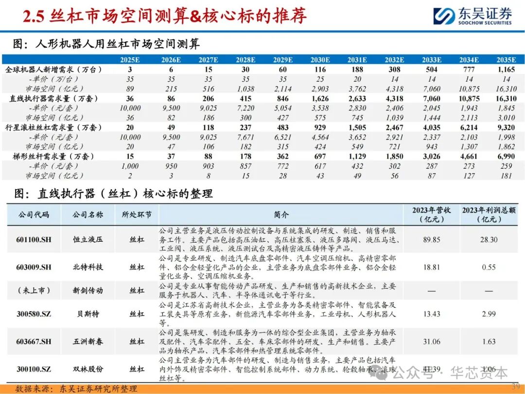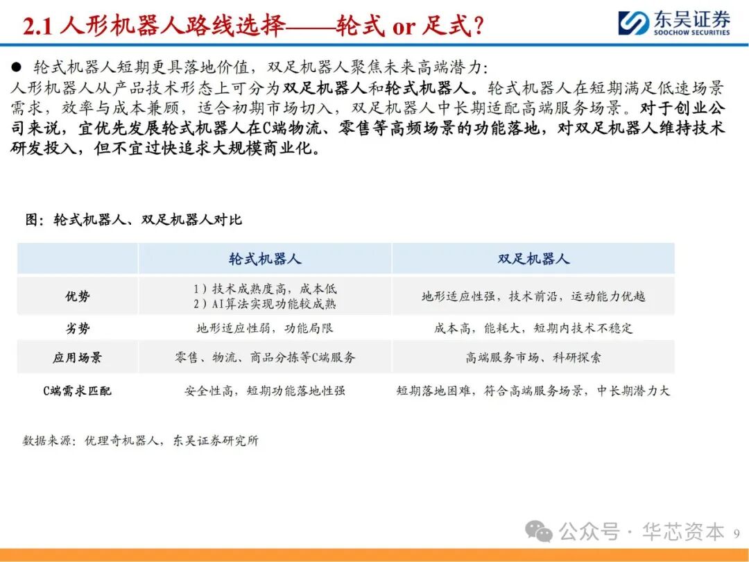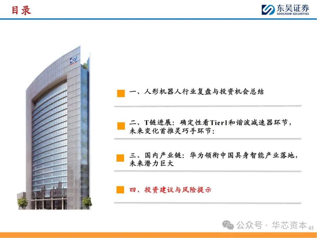 关注华芯资本公众号并发送“人形机器人”可获得PDF报告《人形机器人行业2025年度策略:人工智能的终极载体,量产在即开启十年产业大周期》。Q1:人形机器人行业当前的核心发展趋势是什么?A1:行业正迈向量产化与智能化新阶段,AI技术成为关键驱动力。1)量产化加速:特斯拉Optimus预计2025年产量达千台级别,2026年或增至5-10万台,2030年全球新能源汽车工厂需求或达50万台。2)AI赋能通用性:以ChatGPT为代表的端到端大模型技术,解决了人形机器人自主决策和环境适应的难题,使其从单一场景向通用场景突破。3)产业链分工明确:特斯拉(T链)和华为领衔国内产业链,核心零部件(如谐波减速器、灵巧手)成为竞争焦点。Q2:特斯拉Optimus的量产进展如何?哪些环节最具投资确定性?A2:特斯拉Optimus迭代迅速,硬件成熟度显著提升。量产规划:2025年产量预计达千台,2026年目标扩产至5-10万台,2027年或突破50万台。核心供应链:1)Tier1供应商:三花智控(热管理)、拓普集团(底盘结构)绑定特斯拉,确定性最高。2)谐波减速器:绿的谐波(国产龙头)和哈默纳科(日本巨头)占据主导,国产替代加速。3)灵巧手:短期内以外资为主,长期关注兆威机电、鸣志电器等国产替代机会。Q3:谐波减速器为何是人形机器人的关键技术?国产企业有何优势?A3:谐波减速器因体积小、精度高,成为人形机器人旋转关节的首选。1)技术难点:需解决棘轮效应、共振现象及减重问题,量产依赖工艺经验(如柔轮装配)。2)竞争格局:哈默纳科全球市占率38%,但扩产缓慢;绿的谐波(市占率26%)凭借成本优势(价格低30%)和快速扩产能力(目标产能100万台/年),有望抢占份额。3)国产替代逻辑:环保限制和人力成本使日本扩产困难,中国产业链成本低、响应快。Q4:华为如何布局人形机器人产业链?哪些领域值得关注?A4:华为以“大模型+算力”为核心,推动具身智能落地。技术布局:1)盘古大模型提供AI决策能力,异腾芯片支撑算力需求。2)与兆威机电(微型传动)、拓斯达(工业机器人)等16家企业合作,加速技术外溢。投资主线:1)整机制造:关注拓斯达、埃夫特等与华为联创的智能工作站项目。2)核心零部件:兆威机电(灵巧手传动)、禾川科技(伺服系统)有望受益。3)潜力场景:汽车工厂(质检/总装)、家庭服务(端茶倒水)为初期落地方向。Q5:人形机器人市场空间有多大?哪些应用场景将率先爆发?A5:汽车工厂是短期核心场景,长期向服务业扩展。市场测算:1)2030年特斯拉工厂需求12.5万台,全球新能源汽车工厂需求50万台。2)谐波减速器市场规模或达751亿元(2035年),灵巧手电机市场618亿元。场景优先级:1)汽车制造:总装环节自动化率仅10%,人形机器人可替代人工安装、质检。2)物流与零售:轮式机器人(成本低)优先切入C端配送、仓储管理。3)家庭服务:需等待AI交互和安全性技术成熟,预计2030年后放量。Q6:投资该行业需警惕哪些风险?A6:三大风险需重点关注:1)技术迭代风险:灵巧手、传感器等技术路线未定型,现有供应商可能被替代。2)量产不及预期:核心零部件(如行星滚柱丝杠)加工难度高,或拖累降本进度。3)地缘政治风险:中美贸易摩擦或影响芯片、精密部件供应链稳定性。结语人形机器人行业正处于“硬件迭代+AI突破”的关键节点,特斯拉与华为分别引领全球和国内产业链发展。投资者需聚焦高确定性环节(T链、谐波减速器),同时关注华为链的预期差机会。短期看汽车工厂落地,长期押注通用场景突破,但需警惕技术路径变化与国际局势波动带来的不确定性。/END/最近我们要组织一系列关于【AI、半导体、新材料】闭门会议,有兴趣的同学,非常欢迎和我们多多交流,互相探讨,一起成长(华芯资本梁东健,VX:sinbaliang)。