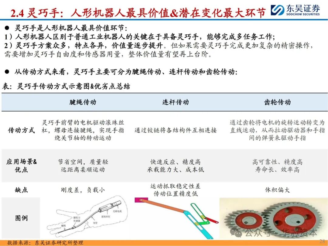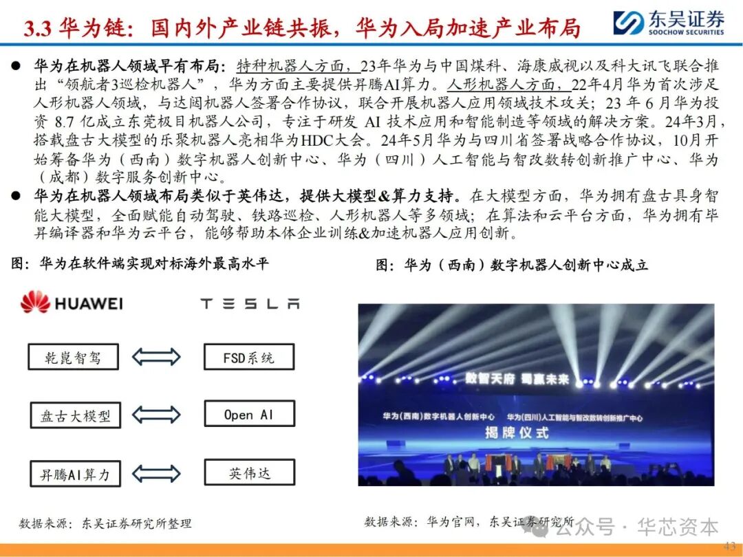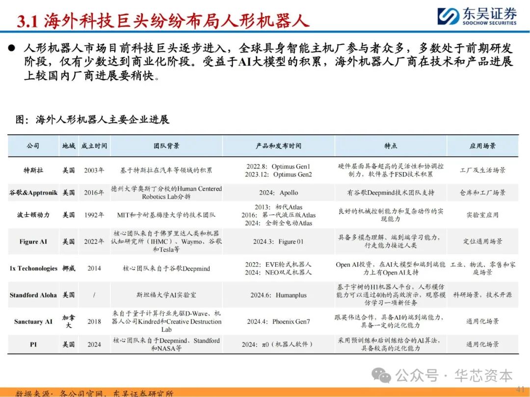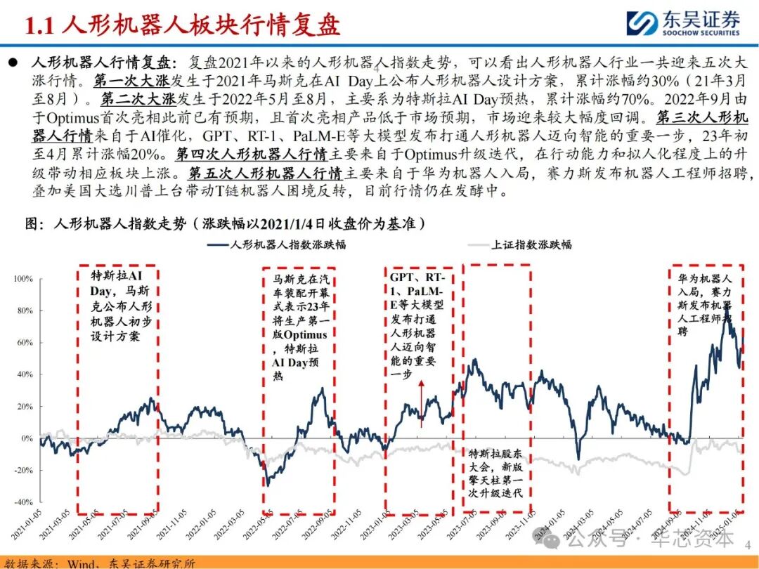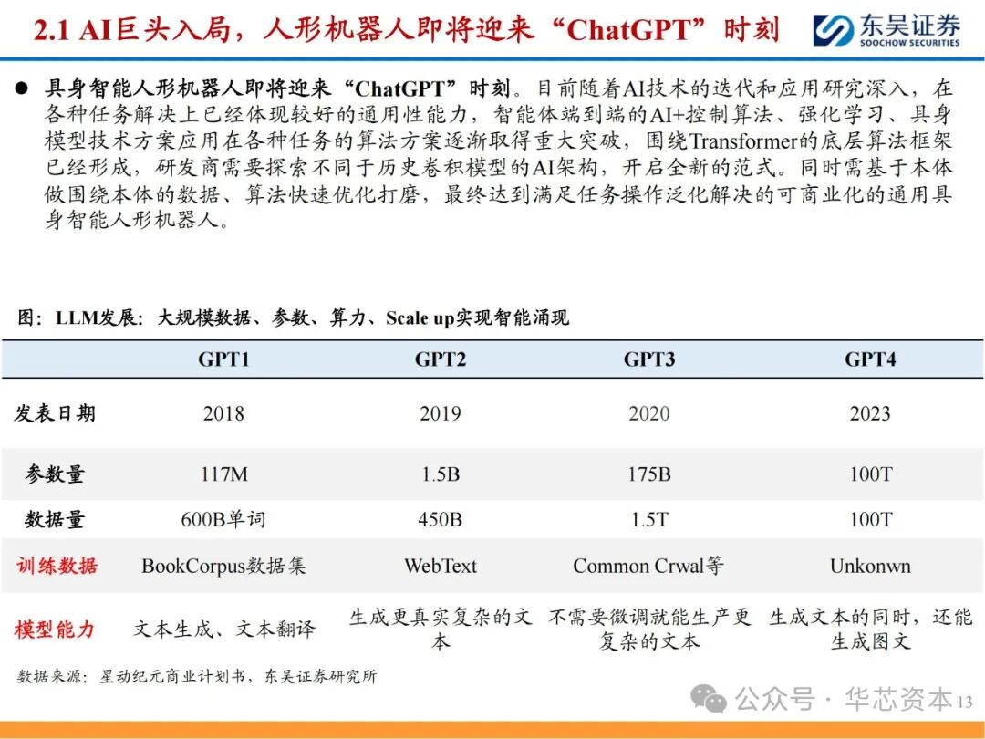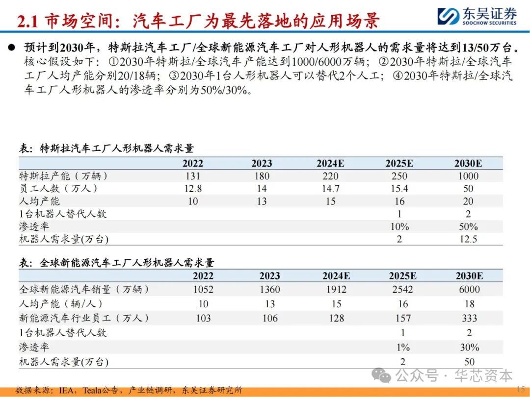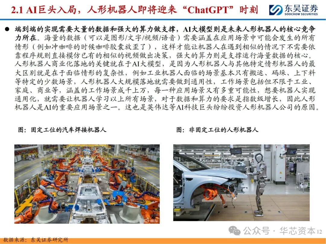关注华芯资本公众号并发送“人形机器人”可获得PDF报告《人形机器人行业2025年度策略:人工智能的终极载体,量产在即开启十年产业大周期》。Q1:人形机器人行业当前的核心发展趋势是什么?A1:行业正迈向量产化与智能化新阶段,AI技术成为关键驱动力。1)量产化加速:特斯拉Optimus预计2025年产量达千台级别,2026年或增至5-10万台,2030年全球新能源汽车工厂需求或达50万台。2)AI赋能通用性:以ChatGPT为代表的端到端大模型技术,解决了人形机器人自主决策和环境适应的难题,使其从单一场景向通用场景突破。3)产业链分工明确:特斯拉(T链)和华为领衔国内产业链,核心零部件(如谐波减速器、灵巧手)成为竞争焦点。Q2:特斯拉Optimus的量产进展如何?哪些环节最具投资确定性?A2:特斯拉Optimus迭代迅速,硬件成熟度显著提升。量产规划:2025年产量预计达千台,2026年目标扩产至5-10万台,2027年或突破50万台。核心供应链:1)Tier1供应商:三花智控(热管理)、拓普集团(底盘结构)绑定特斯拉,确定性最高。2)谐波减速器:绿的谐波(国产龙头)和哈默纳科(日本巨头)占据主导,国产替代加速。3)灵巧手:短期内以外资为主,长期关注兆威机电、鸣志电器等国产替代机会。Q3:谐波减速器为何是人形机器人的关键技术?国产企业有何优势?A3:谐波减速器因体积小、精度高,成为人形机器人旋转关节的首选。1)技术难点:需解决棘轮效应、共振现象及减重问题,量产依赖工艺经验(如柔轮装配)。2)竞争格局:哈默纳科全球市占率38%,但扩产缓慢;绿的谐波(市占率26%)凭借成本优势(价格低30%)和快速扩产能力(目标产能100万台/年),有望抢占份额。3)国产替代逻辑:环保限制和人力成本使日本扩产困难,中国产业链成本低、响应快。Q4:华为如何布局人形机器人产业链?哪些领域值得关注?A4:华为以“大模型+算力”为核心,推动具身智能落地。技术布局:1)盘古大模型提供AI决策能力,异腾芯片支撑算力需求。2)与兆威机电(微型传动)、拓斯达(工业机器人)等16家企业合作,加速技术外溢。投资主线:1)整机制造:关注拓斯达、埃夫特等与华为联创的智能工作站项目。2)核心零部件:兆威机电(灵巧手传动)、禾川科技(伺服系统)有望受益。3)潜力场景:汽车工厂(质检/总装)、家庭服务(端茶倒水)为初期落地方向。Q5:人形机器人市场空间有多大?哪些应用场景将率先爆发?A5:汽车工厂是短期核心场景,长期向服务业扩展。市场测算:1)2030年特斯拉工厂需求12.5万台,全球新能源汽车工厂需求50万台。2)谐波减速器市场规模或达751亿元(2035年),灵巧手电机市场618亿元。场景优先级:1)汽车制造:总装环节自动化率仅10%,人形机器人可替代人工安装、质检。2)物流与零售:轮式机器人(成本低)优先切入C端配送、仓储管理。3)家庭服务:需等待AI交互和安全性技术成熟,预计2030年后放量。Q6:投资该行业需警惕哪些风险?A6:三大风险需重点关注:1)技术迭代风险:灵巧手、传感器等技术路线未定型,现有供应商可能被替代。2)量产不及预期:核心零部件(如行星滚柱丝杠)加工难度高,或拖累降本进度。3)地缘政治风险:中美贸易摩擦或影响芯片、精密部件供应链稳定性。结语人形机器人行业正处于“硬件迭代+AI突破”的关键节点,特斯拉与华为分别引领全球和国内产业链发展。投资者需聚焦高确定性环节(T链、谐波减速器),同时关注华为链的预期差机会。短期看汽车工厂落地,长期押注通用场景突破,但需警惕技术路径变化与国际局势波动带来的不确定性。/END/最近我们要组织一系列关于【AI、半导体、新材料】闭门会议,有兴趣的同学,非常欢迎和我们多多交流,互相探讨,一起成长(华芯资本梁东健,VX:sinbaliang)。
