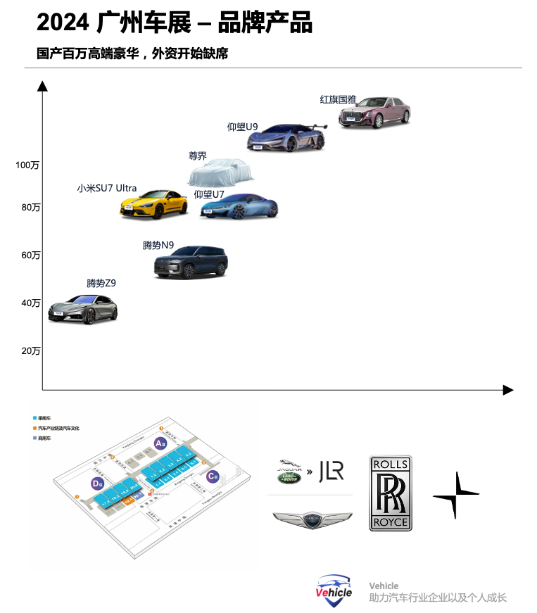 以比亚迪为首的中国大众品牌车型,在大众车型市场势如破竹;如我们之前文章《从腾势Z9GT看比亚迪如何定义豪华汽车》分享到现在借助智能化中国品牌正在攻占豪华高端车型的堡垒,所以本次广州车展可以看到不少中国百万豪车: