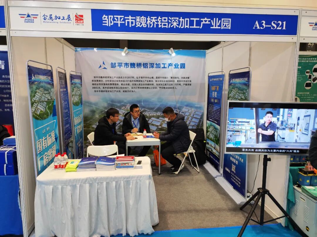 展会中,参展人员向客商详细讲解了邹平市魏桥铝深加工产业园的成本优势、服务体系及园内重点项目建设等情况。
