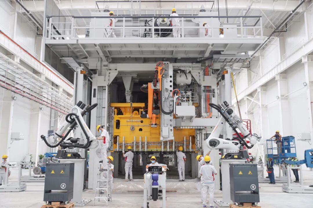 这一智能化基地是如何打造的?据悉,两大基地均按照工业4.0标准建设,采用世界最先进的装备、世界最先进的工艺,实现世界最先进的智能制造。目前,两大基地已进入设备调试阶段,全面达产后可1分钟生产1辆车。