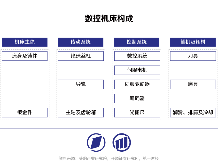 在软件方面,开源证券认为,国产主要瓶颈在于数控系统误差补偿能力,以及伺服系统加减速控制精度等不能满足高端数控机床要求。