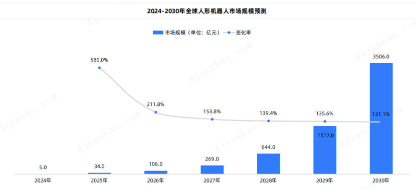 随着人工智能技术的不断突破,人形机器人行业备受关注,未来行业将持续保持高速率发展。据预测,到2030年全球人形机器人市场规模将达到3506亿元。参考中国服务型机器人市场约占全球市场的25%,2030年我国人形机器人市场规模预计将达到876.5亿元。
