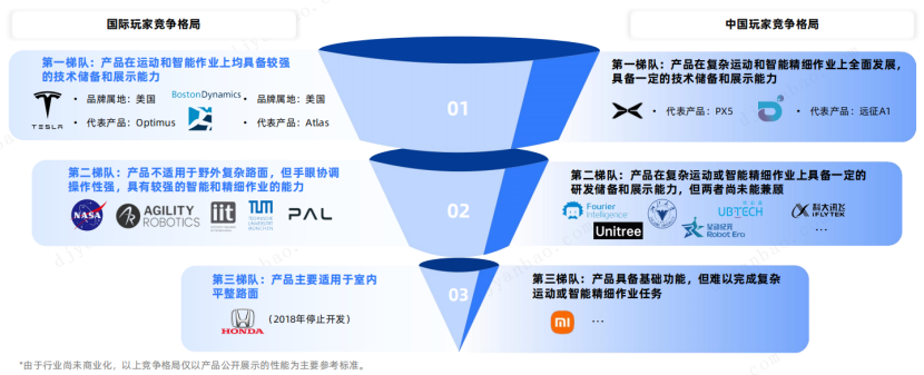 整体来看,国际参与者推出的产品在复杂运动和智能精细作业方面表现更加出色,已经涌现出了少数标杆企业。国内布局企业数量增加,技术研发正在逐步追赶国际企业,多数企业产品在复杂运动和智能精细操作方面仍难以平衡表现。