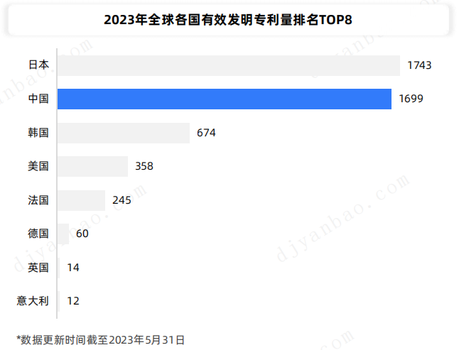 从专利类型上看,人形机器人领域主要以发明专利申请为主,这表明该领域仍处于技术发展的初期阶段。从法律状态上看,失效的专利数量居多,但是随着该领域的技术不断进步,有效和审中的专利数量已经超过了失效的专利数量,这表明人形机器人行业已经积累了一定的技术成果且近年来的发展势头比早期更加强劲。日本研究人形机器人历史更为悠久,拥有全球最多的有效发明专利数量,位居第一。中国则紧随其后,位居全球第二。