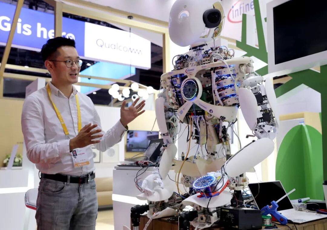 ▲科技生活展区的德国英飞凌公司的机器人Roboy 新华社记者 刘颖 摄