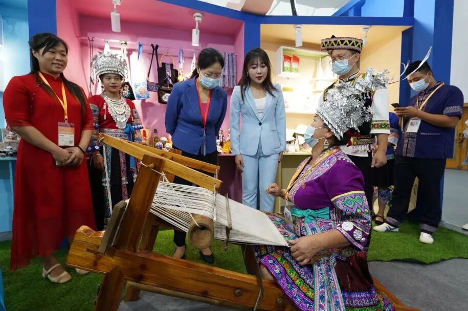 现场展示融水苗族特色织锦技艺 图源:广西云APP