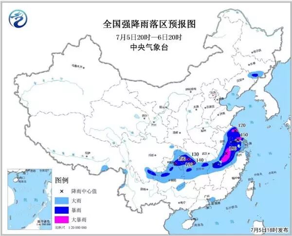 中央气象台预计,今日,江苏大部、安徽东部和南部、浙江西部和北部、上海、江西北部、湖北西南部、湖南北部等地有大雨或暴雨,其中,安徽南部、江西东北部等地局地有大暴雨。