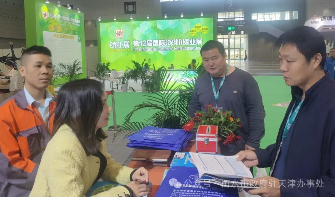 11月27日,衡水市政府驻天津(深圳)办事处副主任宋毅、投资促进处主任魏忠博到展会的压铸铸造行业展馆、精密注塑行业展馆观摩,与行业的精端企业联系交流,推介衡水、宣传衡水(故城)铸造制造、注塑产业的发展情况,寻找重点产业延伸发展的结合点。