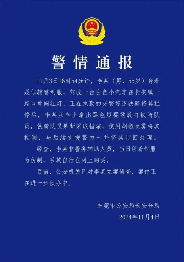 湖南益阳市教育局回应学生玩“死亡游戏”晕倒:已要求全市排查! 东莞一男子身穿仿制辅警制服驾车闯红灯后欲殴打交警,被立案侦查。