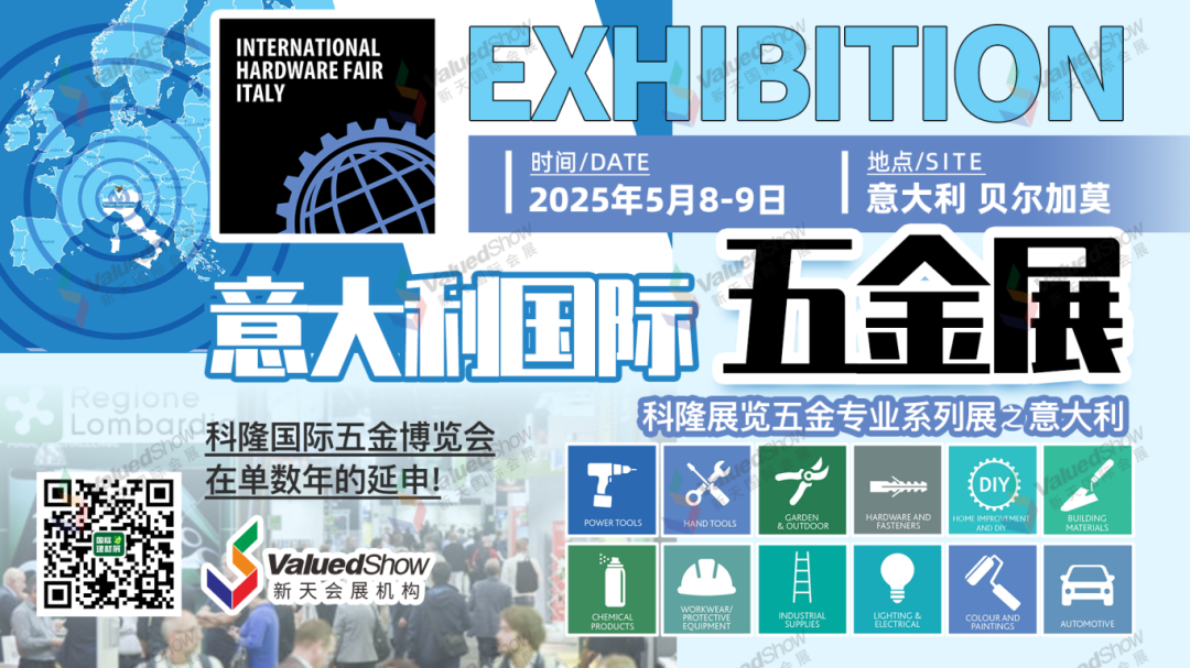意大利五金博览会作为科隆国际五金博览会在单数年的延申,自2023年起,意大利国际五金博览会将于奇数年与科隆国际五金博览会(偶数年)交替举办。首届发布即获得行业广泛认可,进而成为意大利和整个欧洲市场重要的贸易平台。展会汇聚了五金,DIY,建筑,安全,户外,涂料和电气行业等的众多产品与技术,为意大利以及欧洲市场提供一个科隆以外的可持续交流与商务平台,是中国企业面向欧洲客商展示最新产品、建立新的业务伙伴的重要渠道。