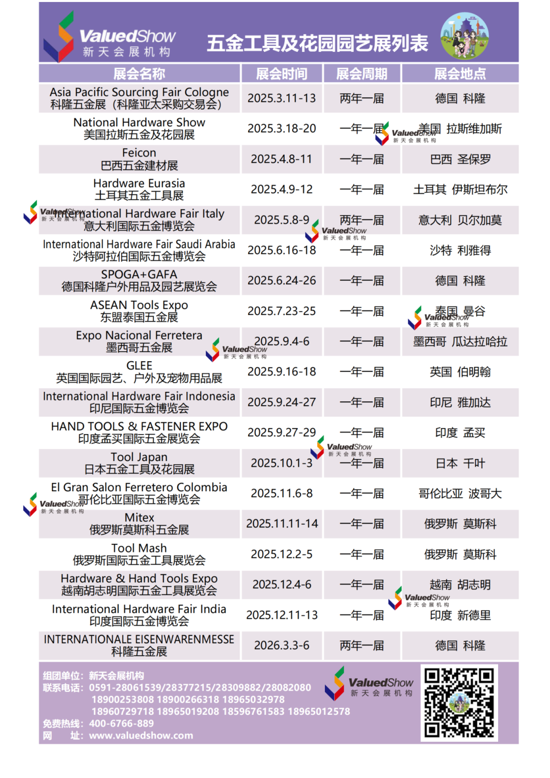 德国科隆博览会有限公司(科隆展览)是众多行业首选的贸易展会组织。每年,科隆展览在科隆和全球顶级市场组织和举办约80场贸易展览会。现在,就跟随小编,来看看科隆展览在2025年所在各地举办的五金系列展览吧~