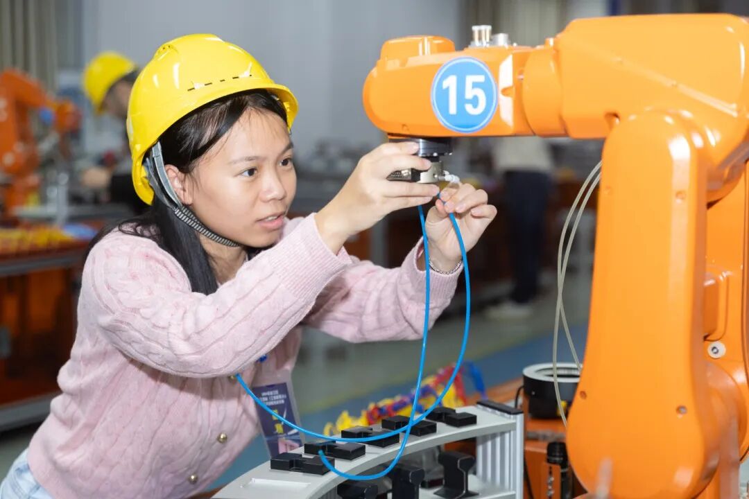 人工智能(工业机器人)赛项以工业机器人为核心单元,融合了工具快换、可编程逻辑控制器(PLC)、气动驱动、传感器、智能视觉检测、人机交互终端(HMI)等先进应用技术,重点考察选手工业机器人系统的安装、编程、调试等专业能力、质量控制、安全意识等职业素养,以及选手的综合职业能力。