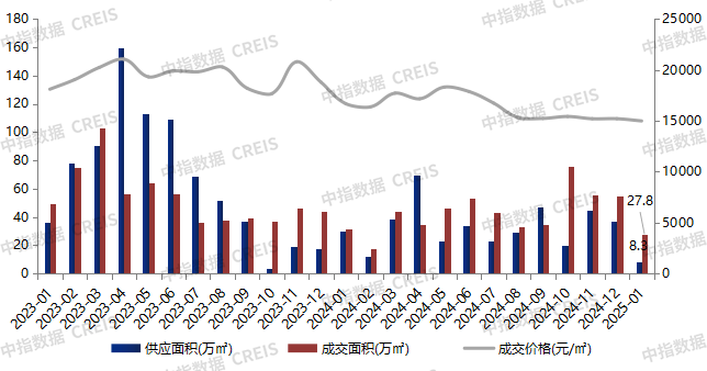 2025年1月,春节前房企取证积极性不高,供应维持低位,成交规模在春节前自然回落。截至27日,佛山市1月成交商品住宅27.8万㎡,环比下降40%,同比下降10.4%。
