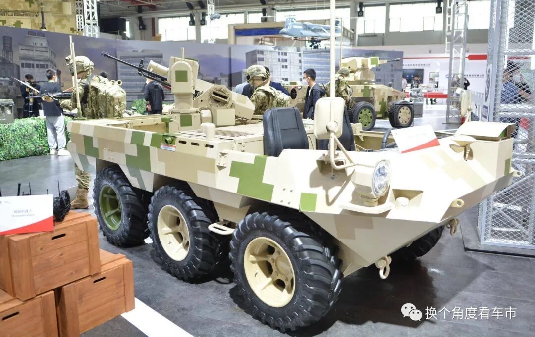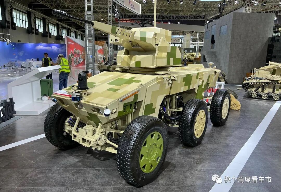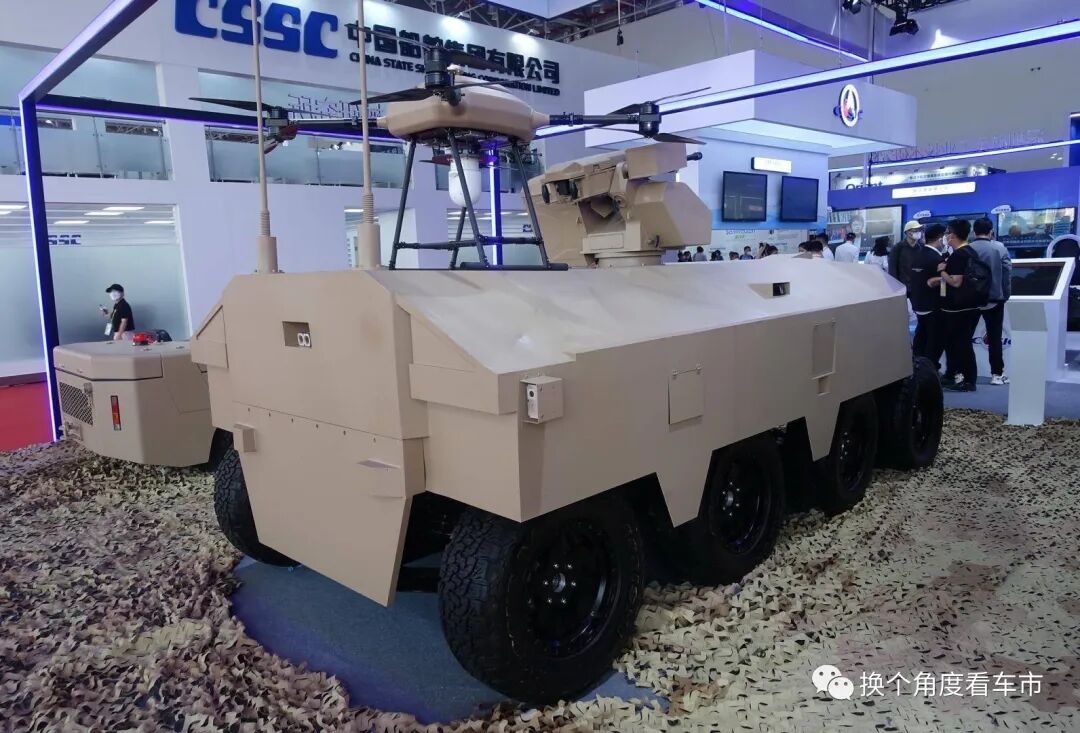 在这些新能源技术军用化的无人作战装备,设定了十分清晰的战术应用环境,并根据REEV\EV驱动架构所特有的“行车发电”、“怠速发电”以及低辐射\低噪音\高机动的技术优势,赋予了武器系统“空前”强大的战术优势。新能源情报分析网评测组,根据载具端的轮履行走机构的不同,研读和判定2022珠海航展“露出”的极具特色多款REEV\EV驱动架构的无人驾驶\无人作战装备技战术优势。备注:文中对诸多装备的技战术的描述,以官方发布信息为准。一、基于REEV驱动架构+6轮毂电机的无人作战轮式装备: