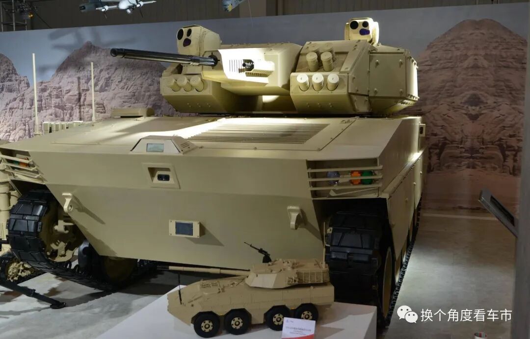 这台基于REEV驱动架构的中型无人作战装甲车辆,在2021年航展就曾露出,只不过火力打击上装模块为老状态。2022年航展版的状态,固定首上装甲板的激光雷达与首下装甲板设定的视频采集系统和毫米波雷达和都进行融合处理,更加美观过渡更加协调。