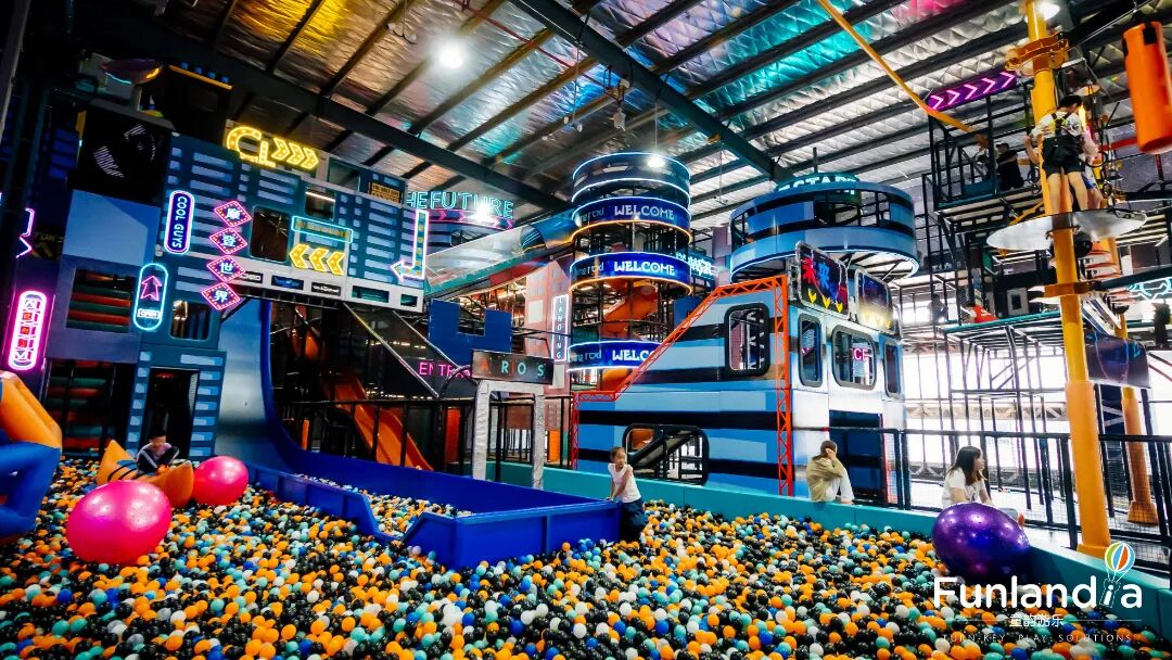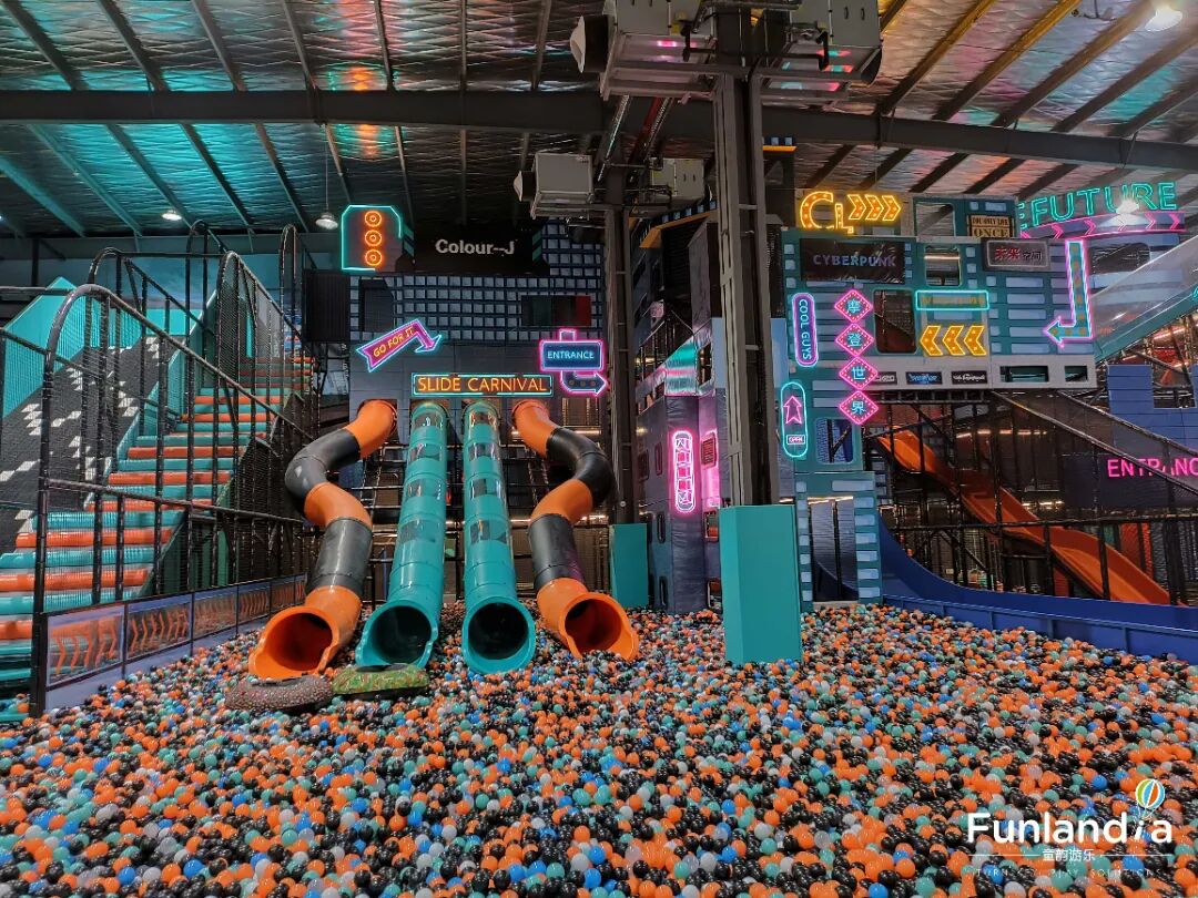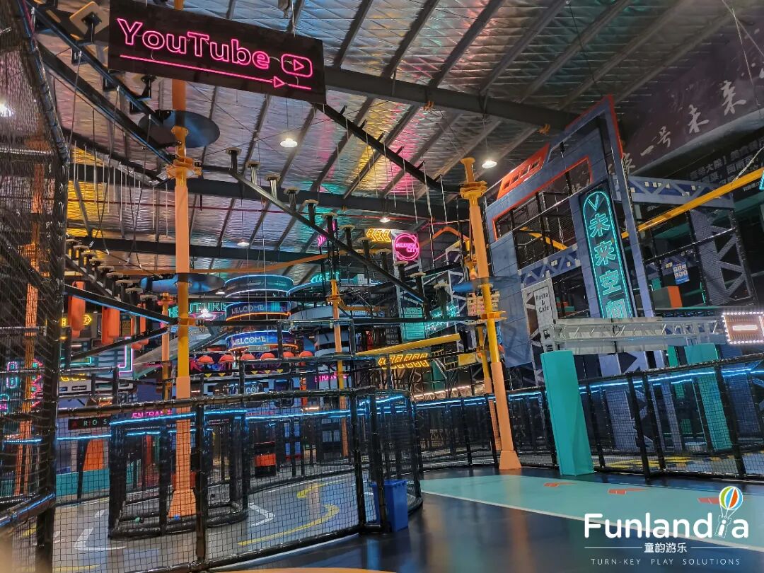 童韵游乐倾力打造的Future Space——未来空间运动乐园,室内游乐园总面积超5000平米,成为江西赣州运动解压中心。基于赛博朋克风格打造的全场景、沉浸式、泛娱乐、泛运动室内乐园,园内集运动竞技、冒险挑战、声光体验、动感勇者游戏于一体,设有高空拓展、仿真滑雪、网红蹦床、趣味攀岩、魔鬼滑梯等众多酷炫精彩的游玩项目,是有名的解压圣地、网红打卡互动乐园。同时也是童韵游乐全案制造能力的成功范例。
