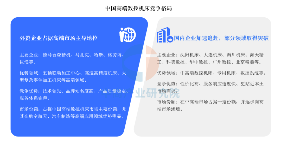中国高端数控机床产业竞争格局呈现出外资企业占据高端市场主导地位,国内企业加速追赶的特点。