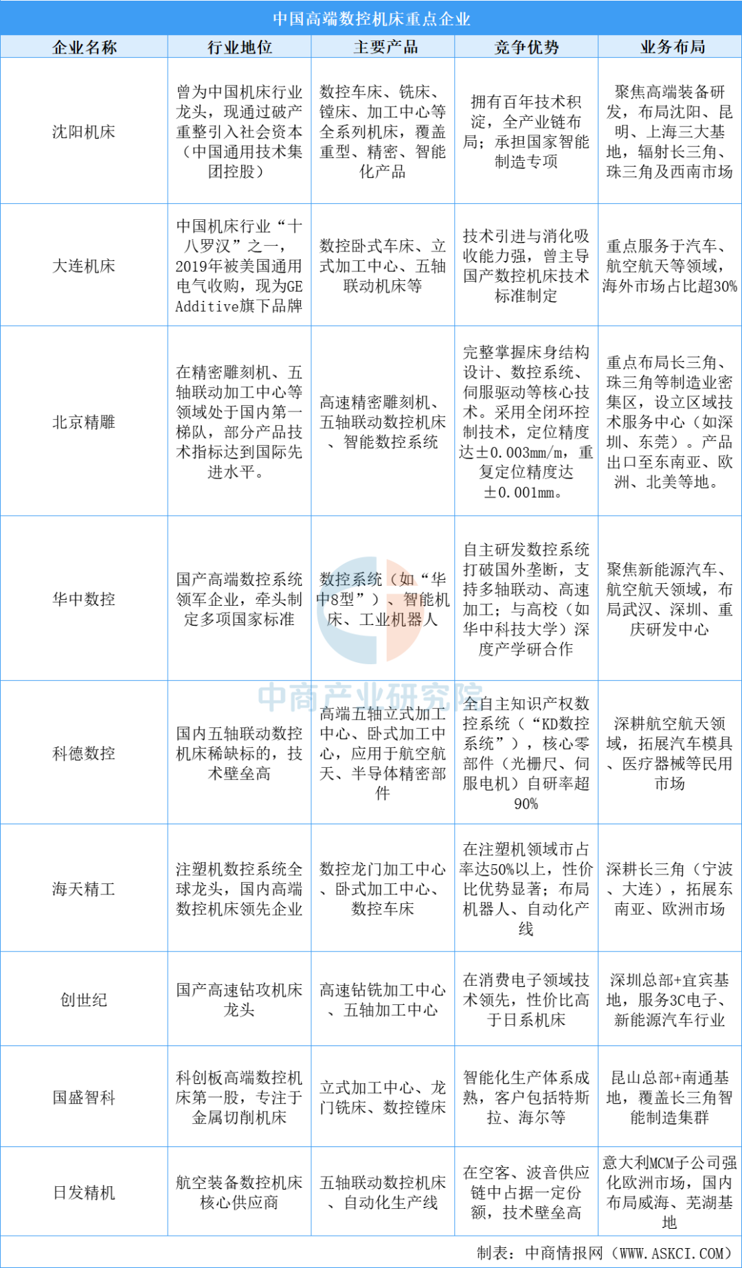 (五)高端数控机床重点企业