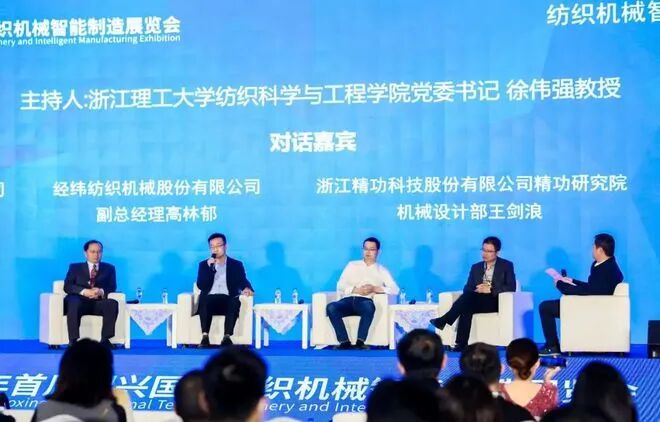 其中,纺织机械智能制造高峰论坛以“智能纺织赋能未来”为主题,邀请了中国纺织机械协会高级顾问、教授级高工祝宪民等行业专家,共同解析交流纺织装备智能制造发展趋势。在论坛对话环节,经纬纺机、杭州杰牌、日发纺机等纺机领域知名企业开展了对话,就纺织与智能制造、未来工厂新探索及解决方案、关于假捻变形机差别化设计研究、纺机行业的精益生产等话题进行了交流。
