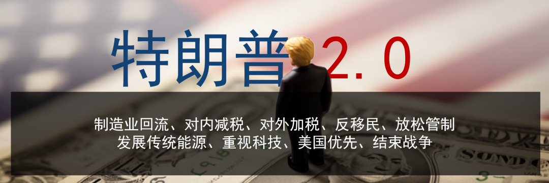 特朗普2.0的关键词:制造业回流、对内减税、对外加税、反移民、放松管制、发展传统能源、重视科技、美国优先、结束战争。经济结果是再通胀和逆全球化,地缘结果是孤立主义。特朗普新政将给全球带来很大的不确定性,我们需要准备好应对特朗普2.0的冲击。