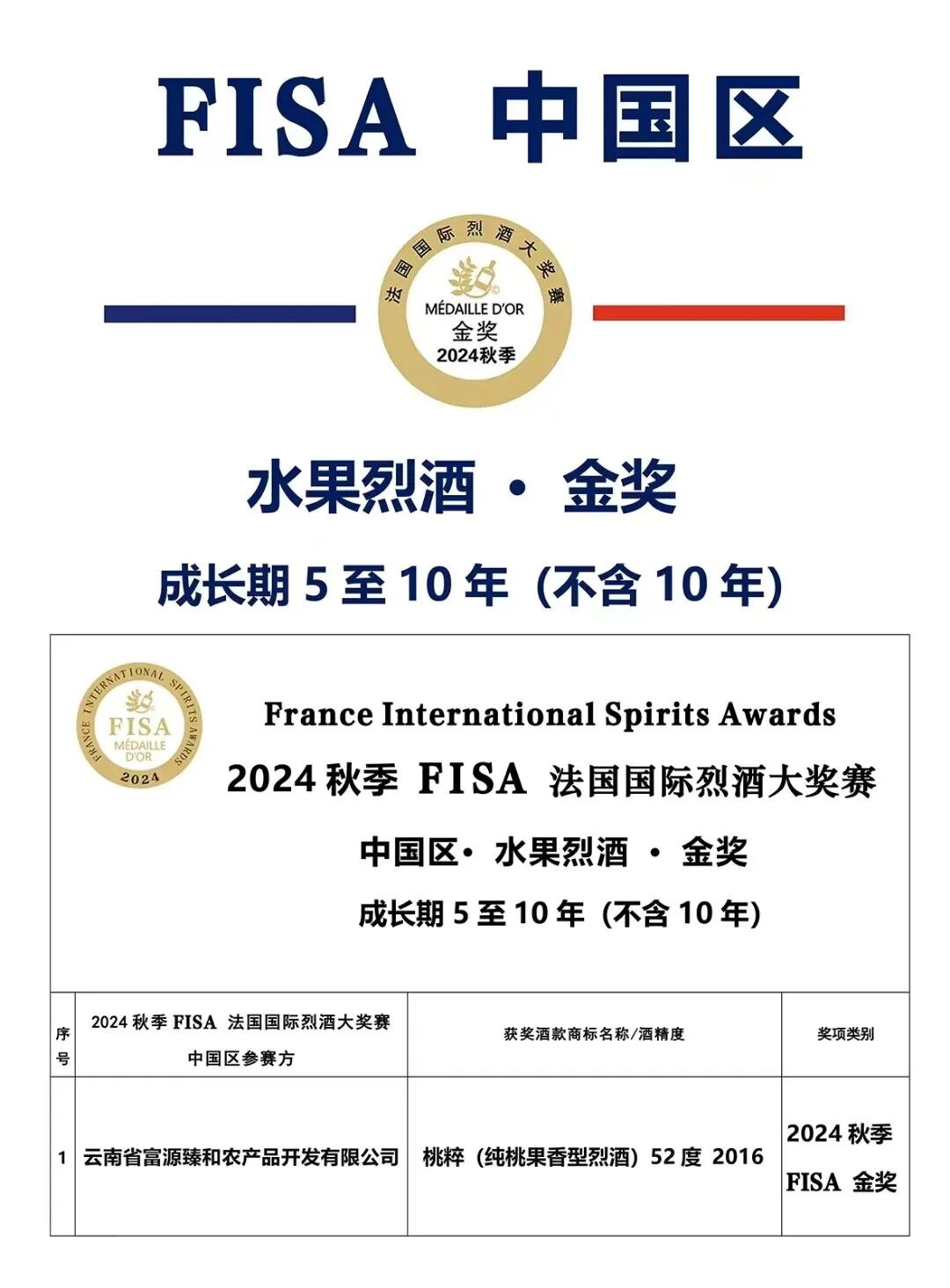 2024年10月25日,桃粹荣获2024FISA法国国际烈酒大奖赛金奖。