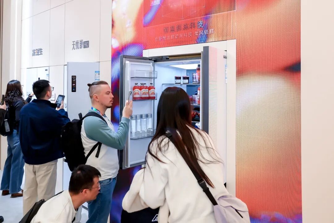 环绕巨幕的七大展区,勾勒出长虹对智慧生活的完整构想:治愈系AI TV用光影疗愈情绪,客餐厅Pro共享空调以智慧风重塑空气舒适度,M鲜生冰箱以33天玫瑰保鲜挑战食材存储极限,蓝氧洗护设备还原衣物“阳光的味道”,智慧烹饪方案和健康的系统性“全屋热水&净饮”方案向消费者展示智慧、舒适、健康的厨卫生活空间新范式……每一个展位前,观众驻足体验、拍照打卡,科技与生活的边界在此消融。科技不再是冰冷的工具,而是生活的参与者和治愈者。