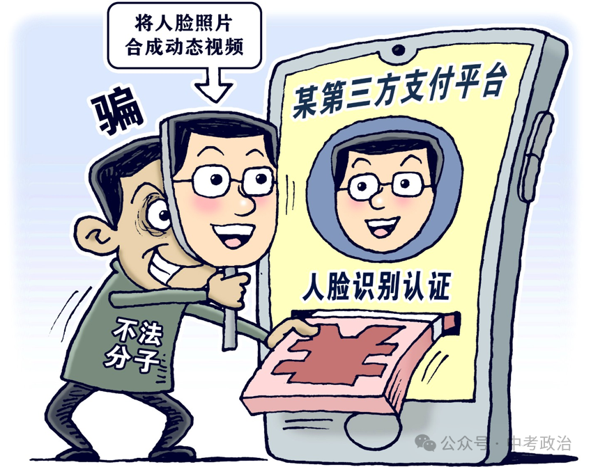10.随着科学技术的发展,一些不法分子利用AI(即人工智能)技术模仿、伪造他人的声音、面孔、视频等信息进行诈骗(如图所示)。对此类行为认识正确的是(