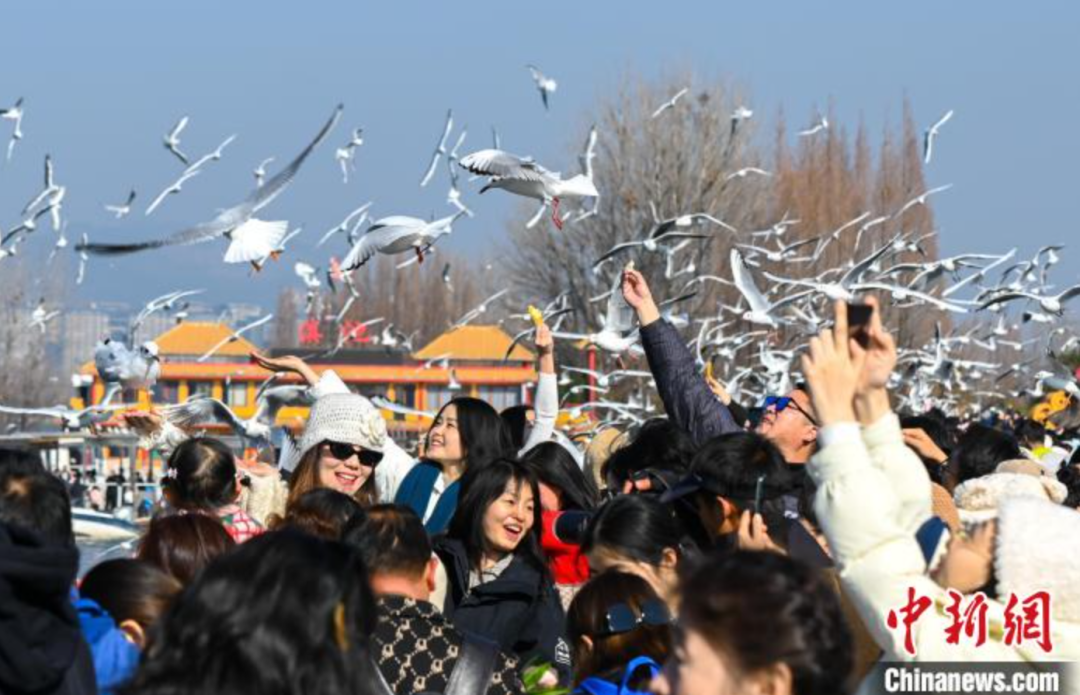 图为游客在云南昆明海埂大坝与红嘴鸥互动。中新网记者 李嘉娴 摄“尽管云南坐拥丰富的自然景观和人文资源,但开发利用仍存在不足,旅游产品同质化、缺乏创新性等问题突出,‘有一种叫云南的生活’走出国门、走向世界还需持续努力。”云南省政协委员汪玲在提案中表示。她建议,充分利用云南独特区位优势,加快打造跨境旅游示范区,开发多条面向南亚东南亚游客的精品旅游线路;将中国240小时过境免签覆盖范围从目前的3个口岸、9个州市扩大至全覆盖;围绕民族文化、中医养生等特色资源,打造更多主题景区和康养设施,吸引南亚、东南亚游客向往云南、游在云南、居在云南。