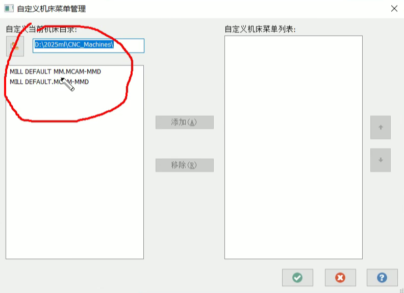 红色的 点击浏览找到自己新建的2025的机床文件位置