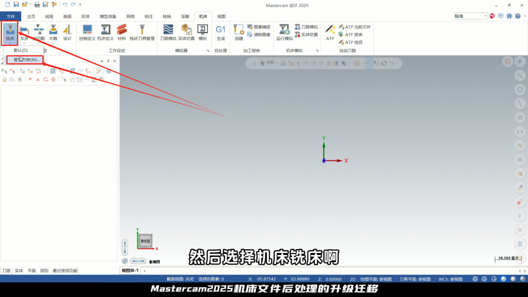 然后我们打开软件,找到左上角的铣床点击管理列表