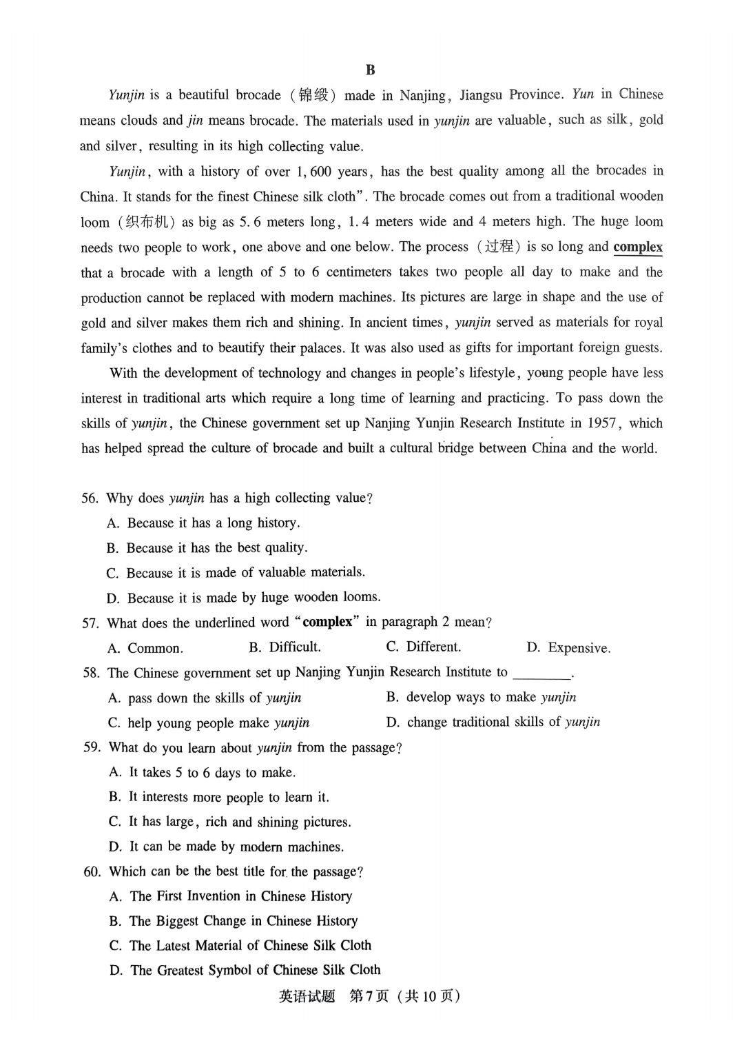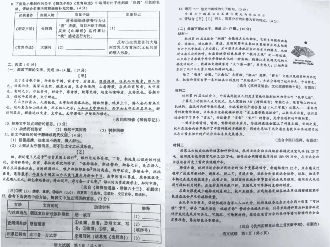 语文试卷√ 答案√