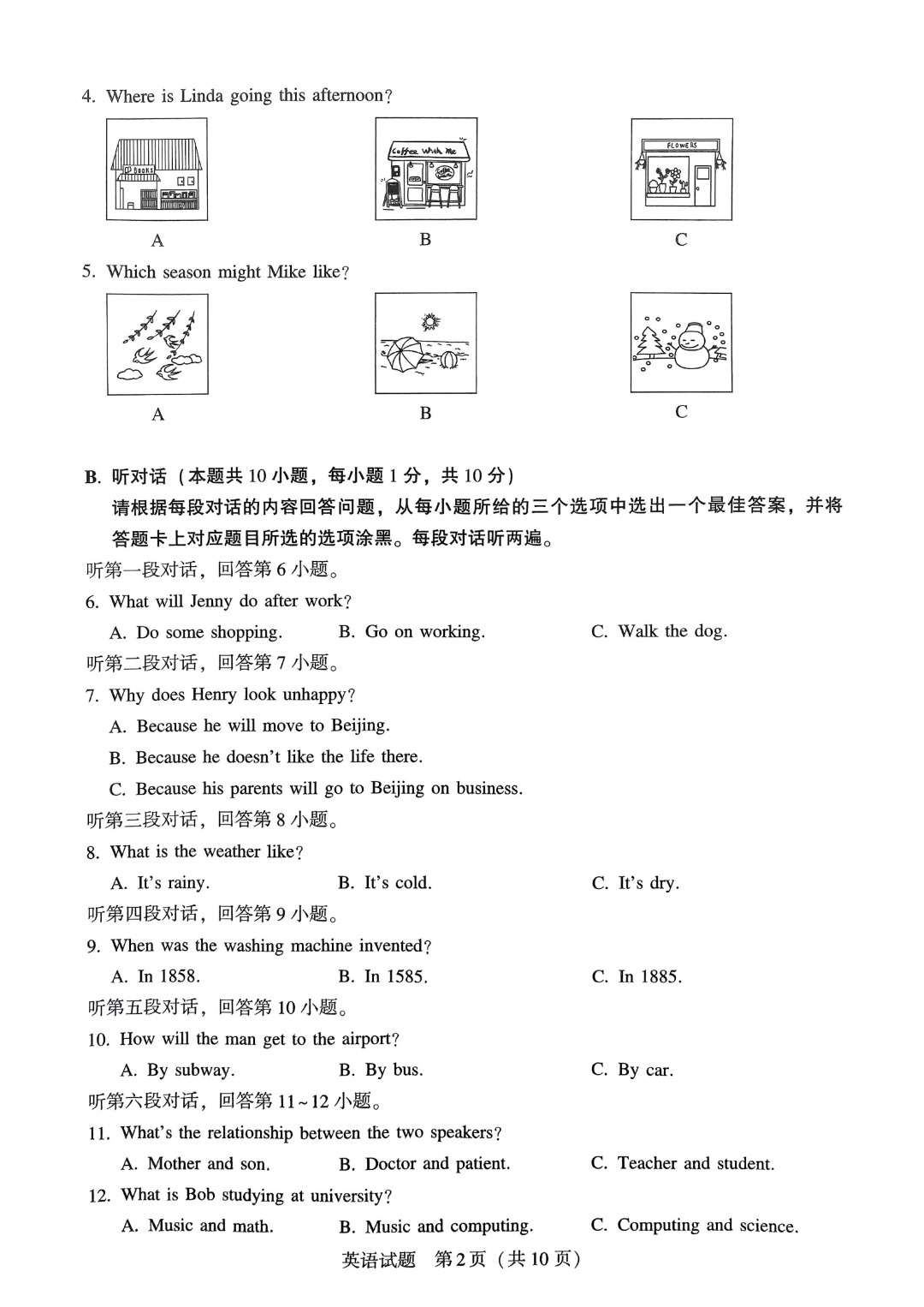 更多高清电子版联考真题+答案