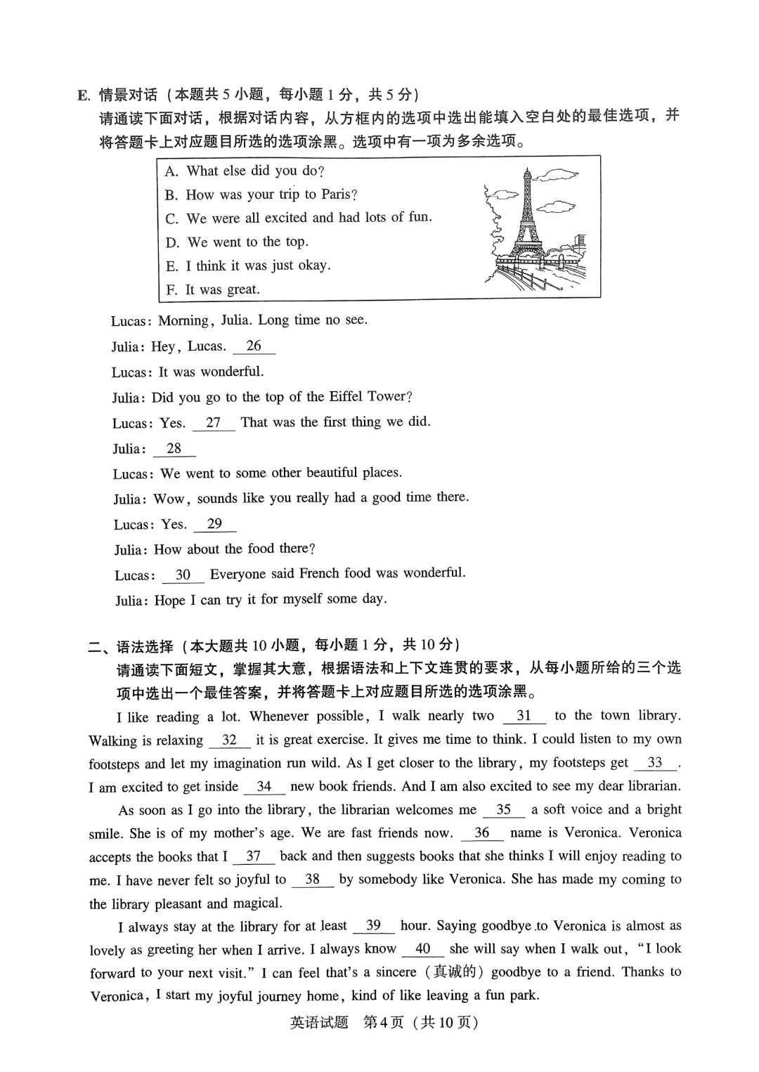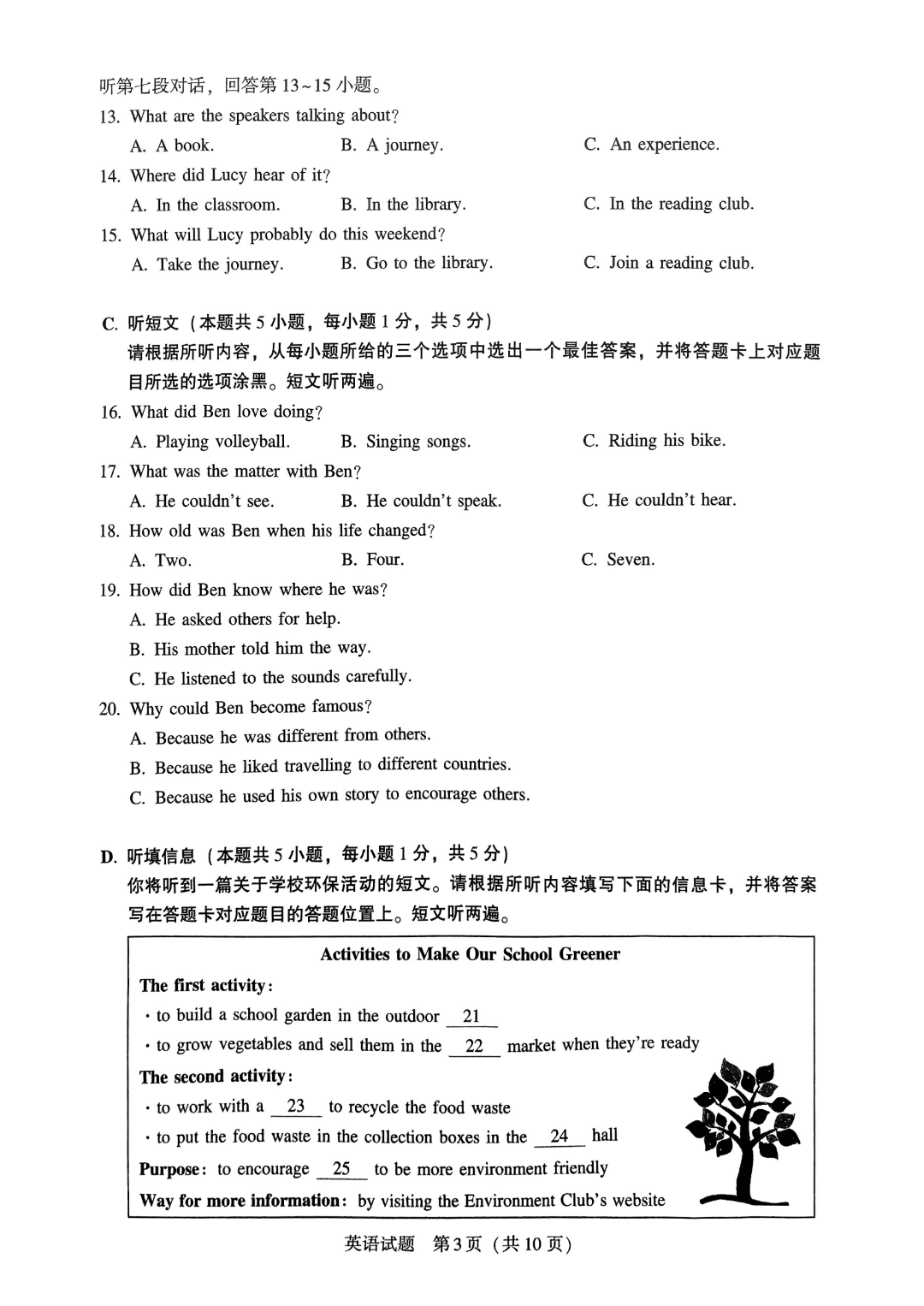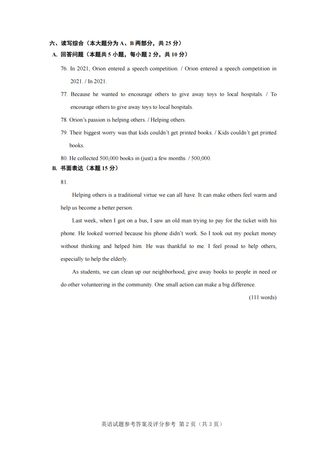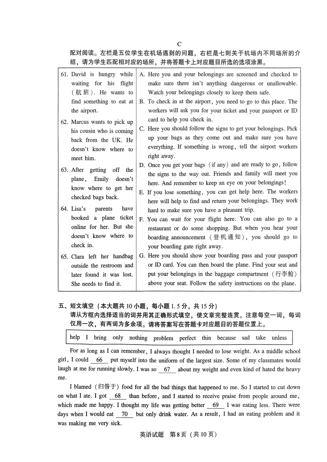 英语试卷√ 答案√